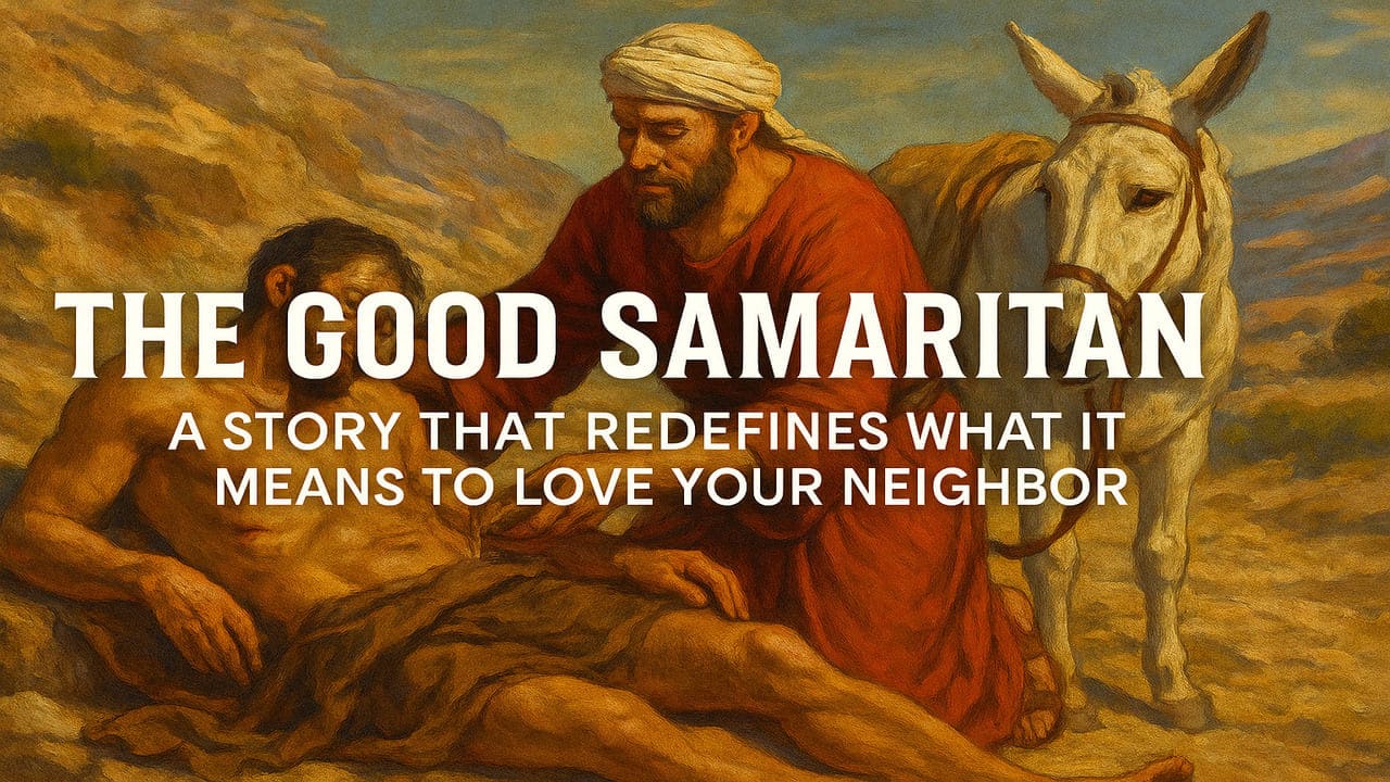 In the parable, Jesus tells of a man traveling from Jerusalem to Jericho who is attacked by robbers, stripped, beaten, and left half-dead by the roadside. A priest and then a Levite both religious figures pass by the man but choose not to help. It is only a Samaritan, a person culturally despised by Jews at the time, who stops, tends to the man’s wounds, places him on his own donkey, and ensures his continued care at an inn.